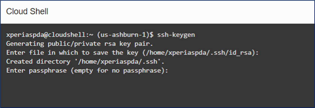 In this post we will see how to use cloud shell to generate SSH Key Pairs (Private & Public Key) & SSH to Linux VM in OCI. Below are the steps: